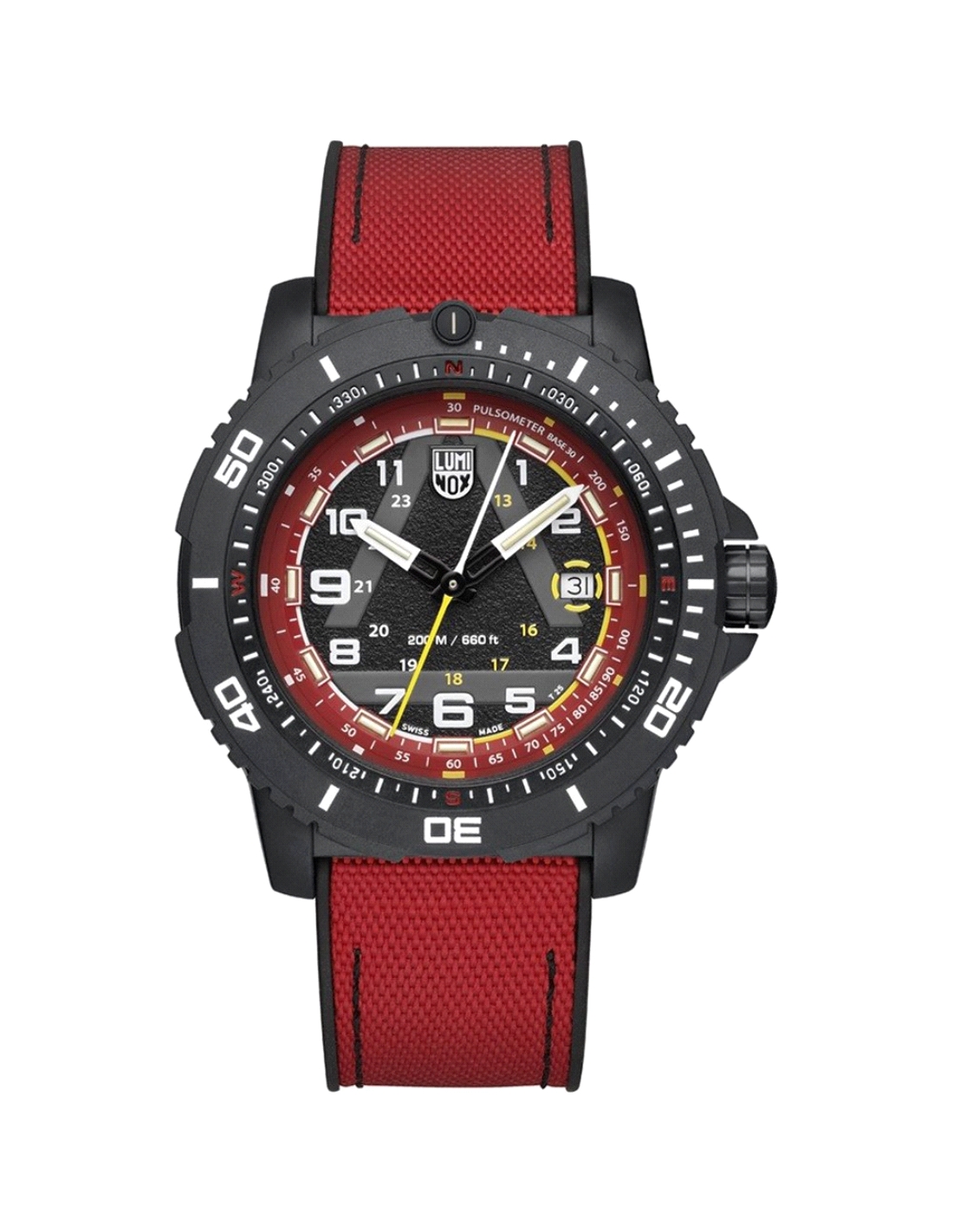 Con una caja de CARBONOXÖ de 45 mm, este reloj táctico de fabricación suiza es ultraligero pero excepcionalmente resistente. Su esfera negra texturizada y su cristal de zafiro con revestimiento antirreflectante garantizan la legibilidad en cualquier entorno. Quince tubos con tecnología de luz Luminox (LLT) proporcionan una visibilidad constante hasta por 25 años, vital en la oscuridad total. Impulsado por un movimiento de cuarzo suizo RONDA, resistente al agua hasta 200 metros y equipado con una escala de pulsómetro, este resistente reloj ofrece precisión bajo presión. La correa de caucho con acabado textil completa un diseño robusto diseñado para la resistencia, la fiabilidad y la aventura: siempre visible, siempre listo.