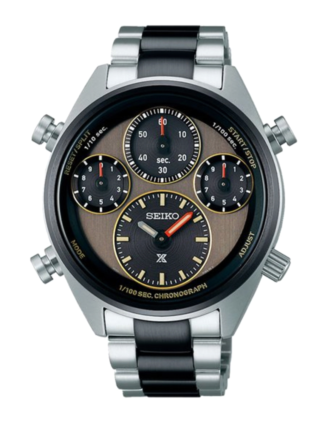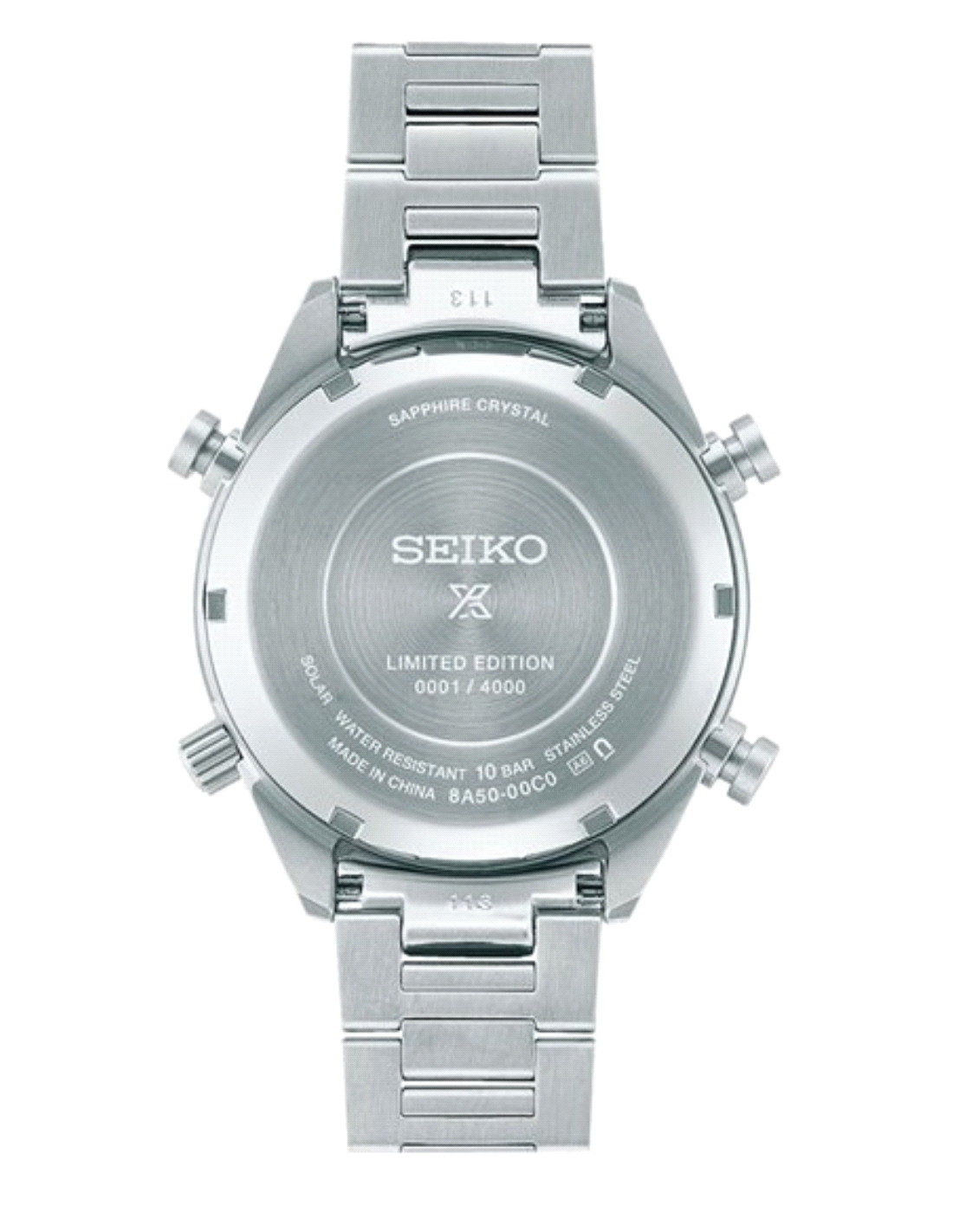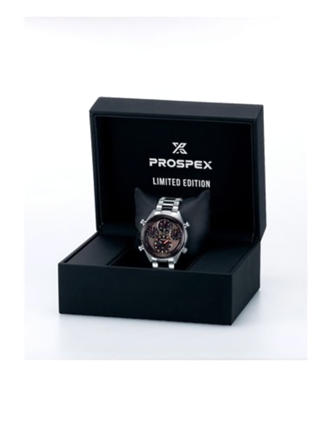 Es un reloj de Prospex Speedtimer Cronógrafos Solares de 1/100 de segundo que se destaca por su precisión y legibilidad. Están equipado con el nuevo calibre cronógrafo solar 8A50, que mide el tiempo transcurrido en incrementos de 1/100 de segundos. Esta creación de edición limitada con la esfera en tonos grises celebra el 40 aniversario del primer cronógrafo de cuarzo analógico del mundo, introducido en 1983. La esfera y las agujas de color naranja rojizo rinden homenaje al primer cronógrafo analógico del mundo que mostraba el tiempo transcurrido en incrementos de 1/100 de segundos, que fue introducido por Seiko nueve años después, en 1992. Este fue un desarrollo particularmente histórico en la historia del cronógrafo de cuarzo analógico de Seiko.